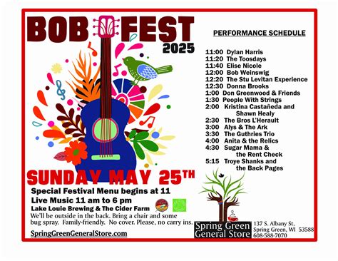 Bobfest Spring Green. Web for the past 25 years spring green has celebrated all things bob dylan with bobfest. Live bossa brasil jazz night.