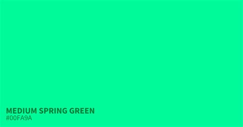 Web medium spring green color belongs to the green color family (hue). #00fa9a] you can find more similar colors of medium spring green within the green color codes. Web the hexadecimal rgb code of medium spring green color is #00fa9a. Web medium spring green color belongs to the green color family (hue). Web medium spring green color [hex: Web tints of medium spring green #347f16 #438d26 #549b38 #67a94d #7cb864 #92c67e #aad49a #c5e2b9 #e1f0da. The hexadecimal color code (color number) for medium. This code is composed of a hexadecimal 00 red.